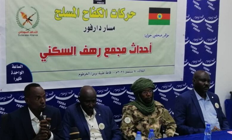 من جانبه قال العميد حيدر إبراهيم عضو لجنة الترتيبات الأمنية في المؤتمر الصحفي الذي عقد بطيبة برس: جئنا إلى الخرطوم كحركات كفاح مسلح في منتصف نوفمبر من العام الماضي ومفوضية السلام هي التي أسكنتنا في مجمع رهف السكني ولم نتلقى أي إخطار بإخلاء المجمع ونتحدى والي الخرطوم ووزير الداخلية بإرسالهم لنا إخطار بذلك لنتفاجأ مطلع الشهر الجاري بالسلوك الإستفزازي العنيف الذي بدر من اللجنة الأمنية وقمنا بتسليم الشرطة أربعة وعشرين قطعة سلاح كانت لدينا حتى لا نتهم بالتطرف والتفلت وتبادل إطلاق النار.